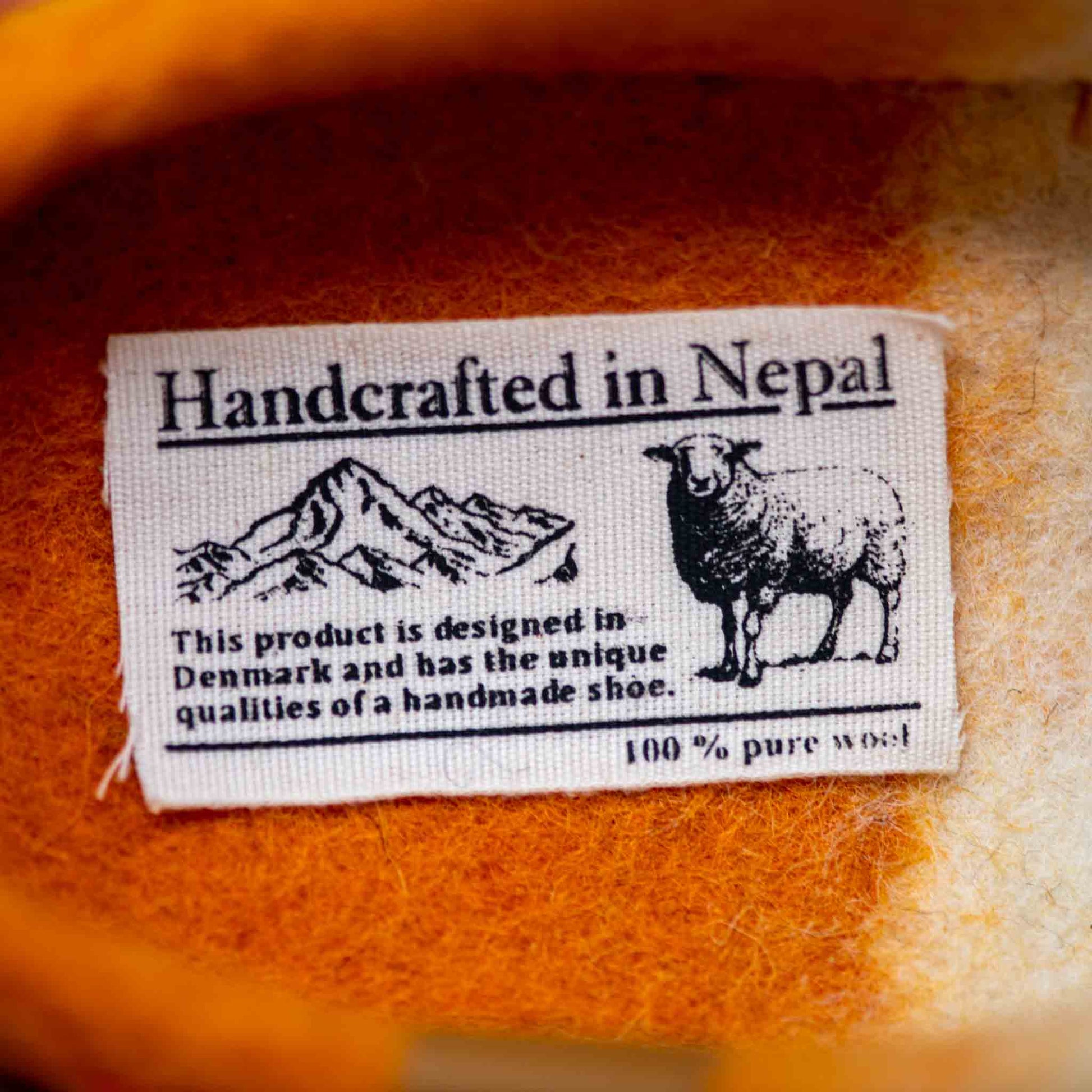 Every pair is created without chemicals or synthetics, offering a pure expression of nature’s fibers. The process provides meaningful work for women in Nepal who truly love their craft, and each pair is signed with an embroidered mark from the artisan who made it, a reminder that comfort begins with human hands and heart.