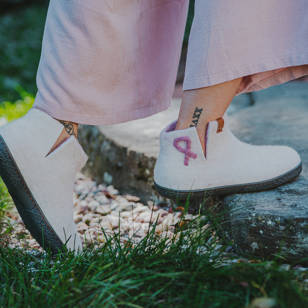 Nepal Wool Slipper | Breast Cancer Ribbon - White Mix
